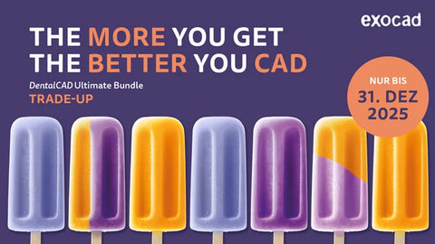 Mit dem ULTIMATE TRADE-UP rüsten Sie Ihre exocad Dauerlizenz einfach auf das volle Ultimate Bundle auf. Alter der Lizenz und bisherige Module sind egal: Sie erhalten die maximale Ausstattung und alle Updates bis Ende 2026.